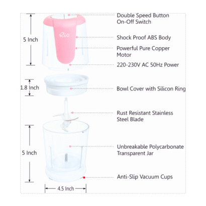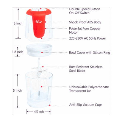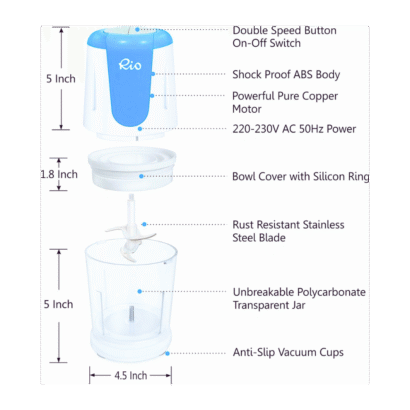 - POWERFUL MOTOR – Instantly process small quantities of food with multipurpose electric chopper having 250W powerful copper motor. It can Chop Vegetable, nuts, fruits & wisk eggs, cream as per desired consistency & avoid
